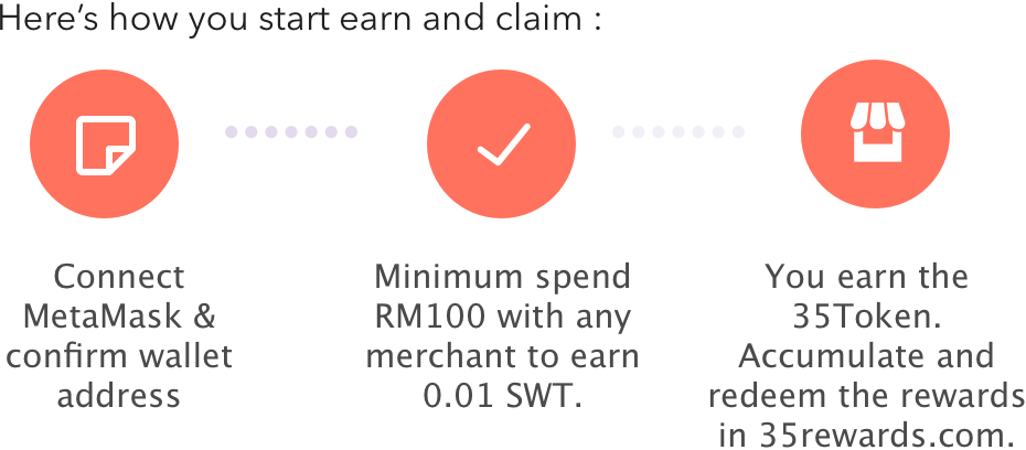 2. Start spending in any merchants with minimum RM100.00 to earn 0.01 SWT.